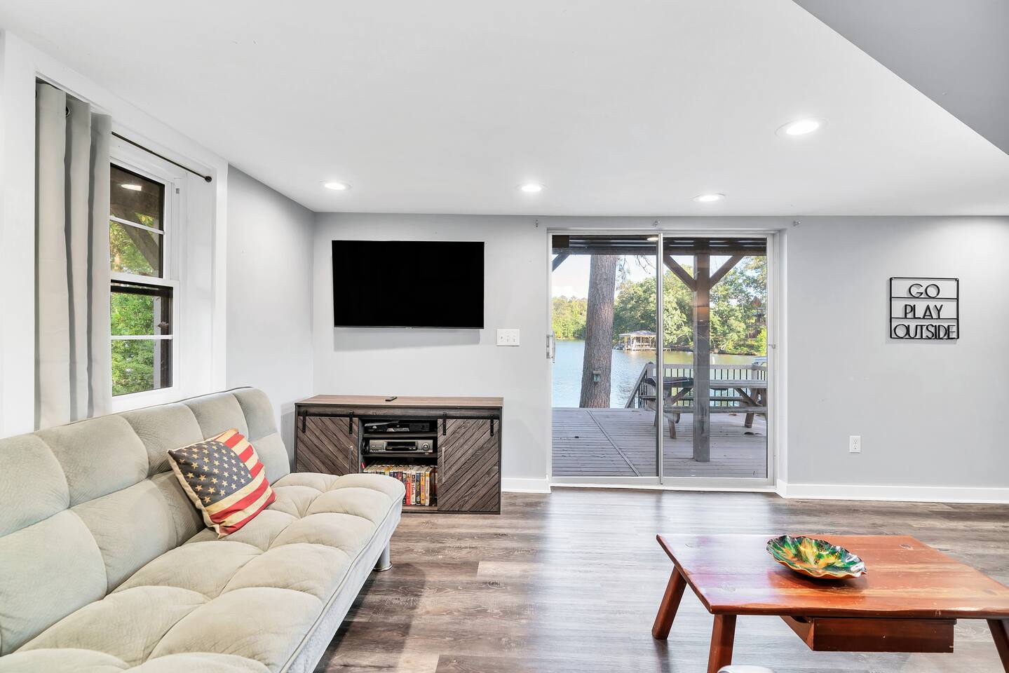 Unwind at this lakefront gem featuring stunning water views and a cozy firepit for evening s’mores. Perfect for families or friends, this retreat offers the best of lake life—swimming, kayaking, or just relaxing by the shore. Inside, you’ll find comfortable furnishings, a well-stocked kitchen, and plenty of space to gather. Whether you're after adventure or relaxation, this spot delivers year-round fun.