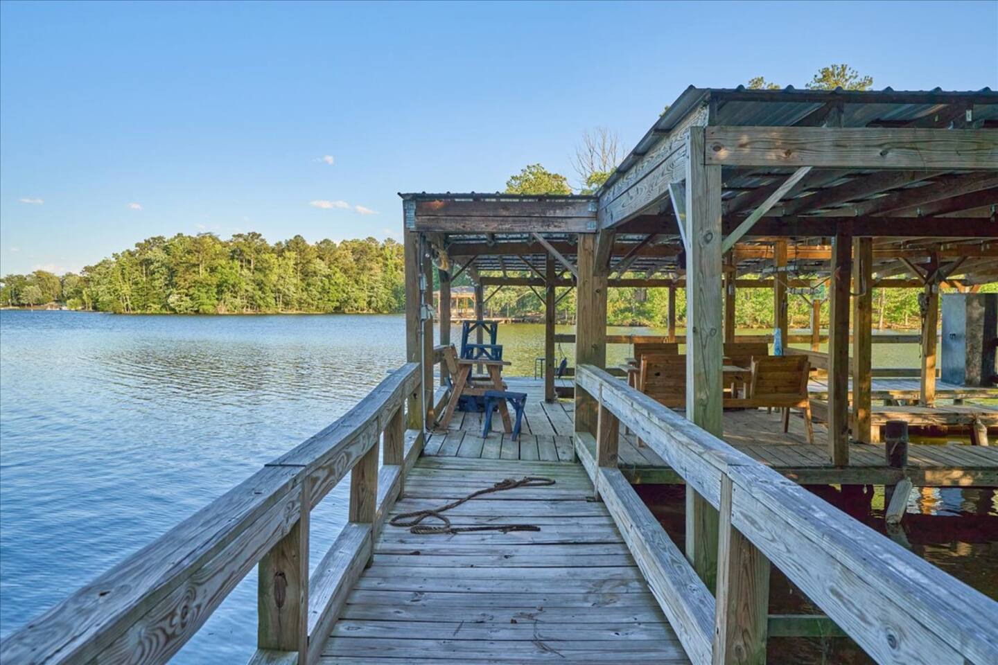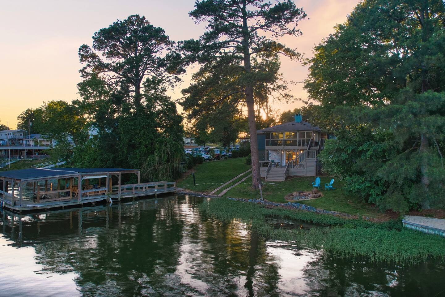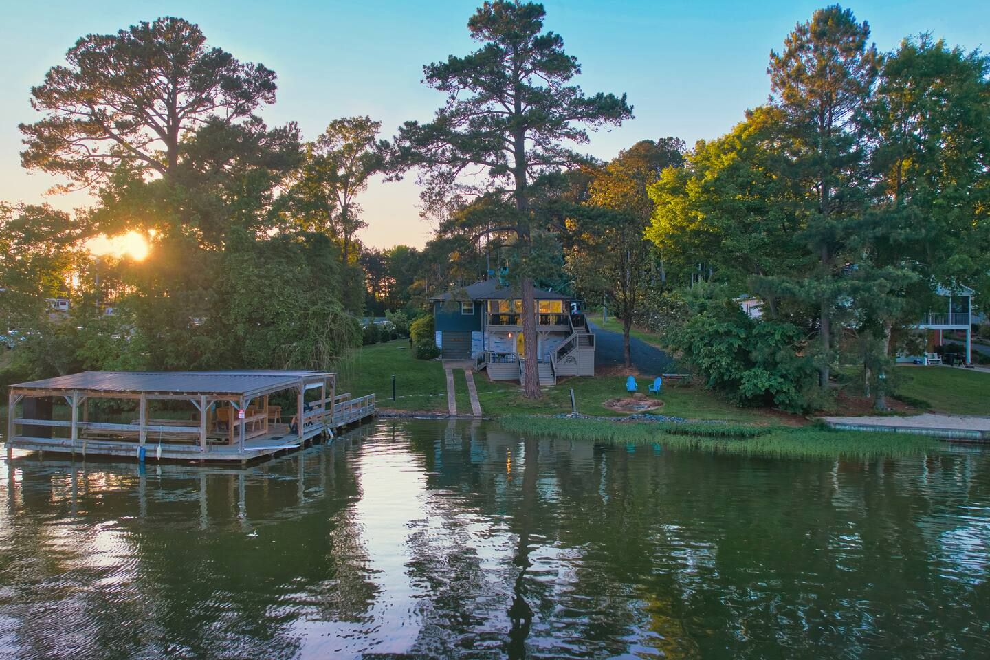 🌲 Forest Lake Retreat — Your Cozy Escape on Badin Lake 🛶🎶 Welcome to Forest Lake Retreat, a laid-back lakefront cabin where cozy comfort meets lakeside adventure! This 5-bedroom, 2-bath getaway sleeps 10 and sits right on the water with a private covered dock—perfect for boating, fishing, swimming, or simply soaking in those peaceful lake vibes. 🏡 Inside, you'll find a warm, welcoming space with a fully stocked kitchen, spacious living areas—a little something for everyone! Whether you're whipping up a lakeside brunch or challenging your crew to game night, you’ll feel right at home. 🎶 Important to note: We’re located next door to Scallywags Restaurant, a beloved local spot known for live music on weekends. You will hear music from the house, so come ready to enjoy the free entertainment or wander over for great food, drinks, and lakefront fun—no designated driver needed! 🍻 🔥 Outside, gather around the firepit under the stars, lounge on the deck with your morning coffee, or tie up the boat and jump right into the lake. 🐾 Bringing pets? We’re pet-friendly! Up to two well-behaved furry friends are welcome to join your lake adventures. Whether you’re here to relax, reconnect, or recharge, Forest Lake Retreat delivers the perfect blend of nature, nostalgia, and nightlife—all wrapped in a cozy lakeside cabin. 📅 Book your stay and come make some unforgettable memories on Badin Lake!