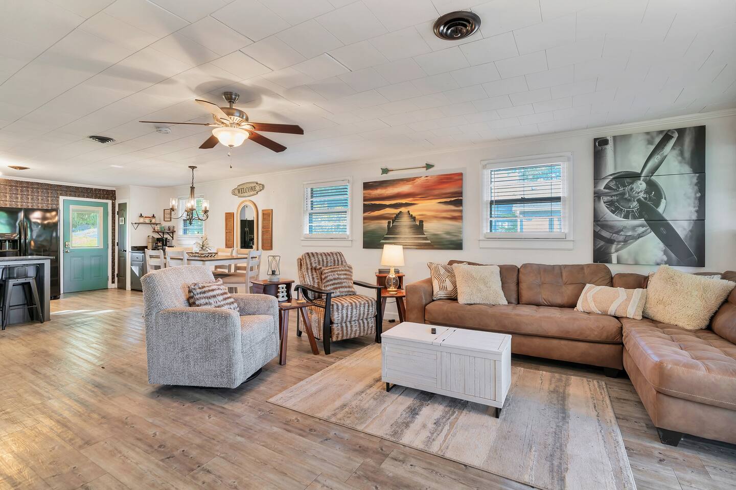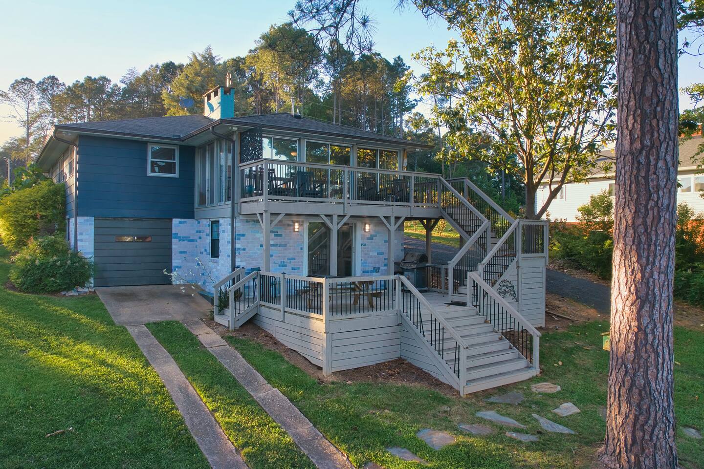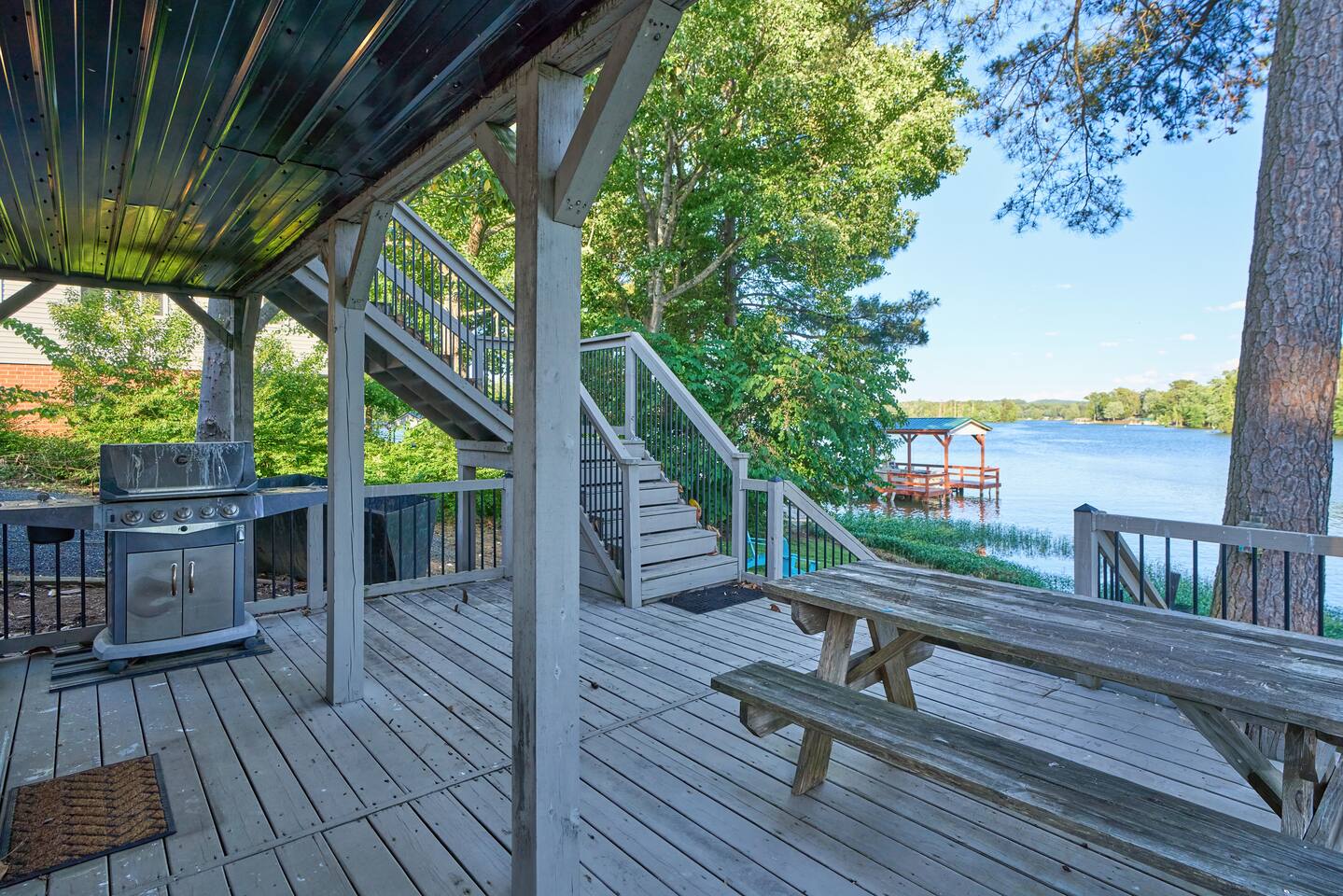 🌲 Forest Lake Retreat — Your Cozy Escape on Badin Lake 🛶🎶 Welcome to Forest Lake Retreat, a laid-back lakefront cabin where cozy comfort meets lakeside adventure! This 5-bedroom, 2-bath getaway sleeps 10 and sits right on the water with a private covered dock—perfect for boating, fishing, swimming, or simply soaking in those peaceful lake vibes. 🏡 Inside, you'll find a warm, welcoming space with a fully stocked kitchen, spacious living areas—a little something for everyone! Whether you're whipping up a lakeside brunch or challenging your crew to game night, you’ll feel right at home. 🎶 Important to note: We’re located next door to Scallywags Restaurant, a beloved local spot known for live music on weekends. You will hear music from the house, so come ready to enjoy the free entertainment or wander over for great food, drinks, and lakefront fun—no designated driver needed! 🍻 🔥 Outside, gather around the firepit under the stars, lounge on the deck with your morning coffee, or tie up the boat and jump right into the lake. 🐾 Bringing pets? We’re pet-friendly! Up to two well-behaved furry friends are welcome to join your lake adventures. Whether you’re here to relax, reconnect, or recharge, Forest Lake Retreat delivers the perfect blend of nature, nostalgia, and nightlife—all wrapped in a cozy lakeside cabin. 📅 Book your stay and come make some unforgettable memories on Badin Lake!