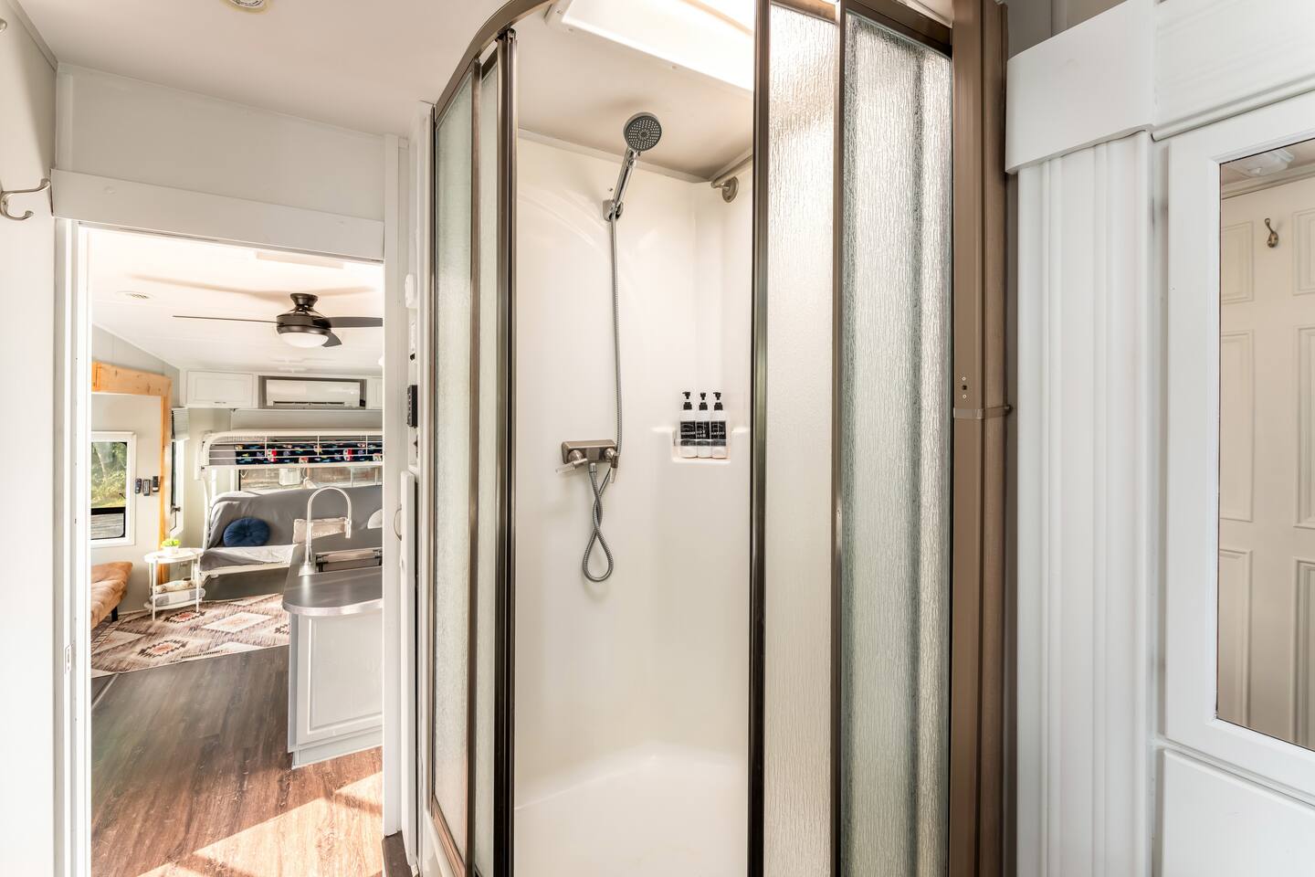 Large Glamper w/ Hot Tub & full bath, amazing view