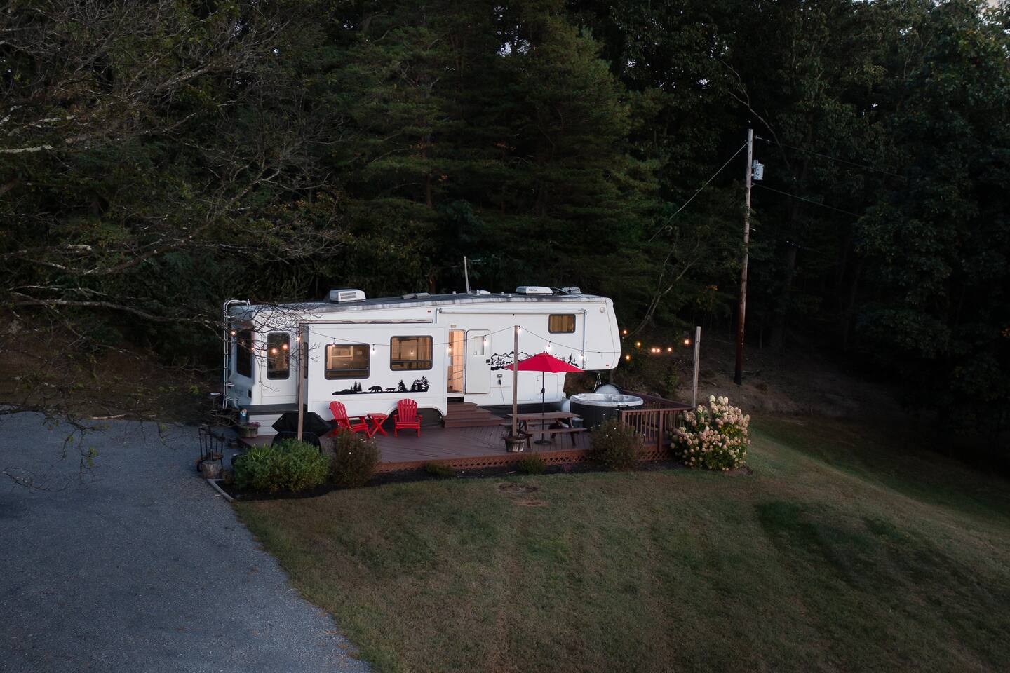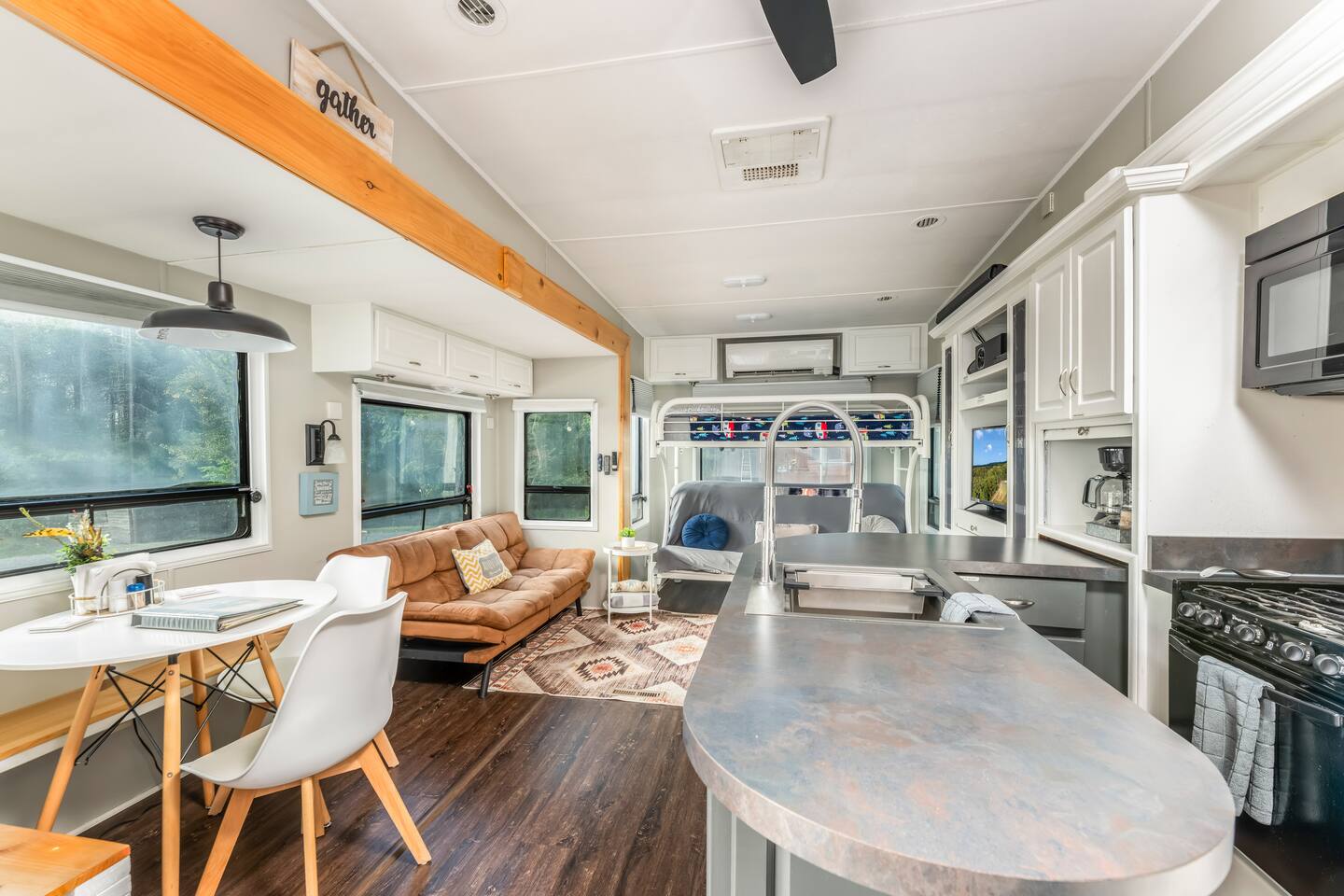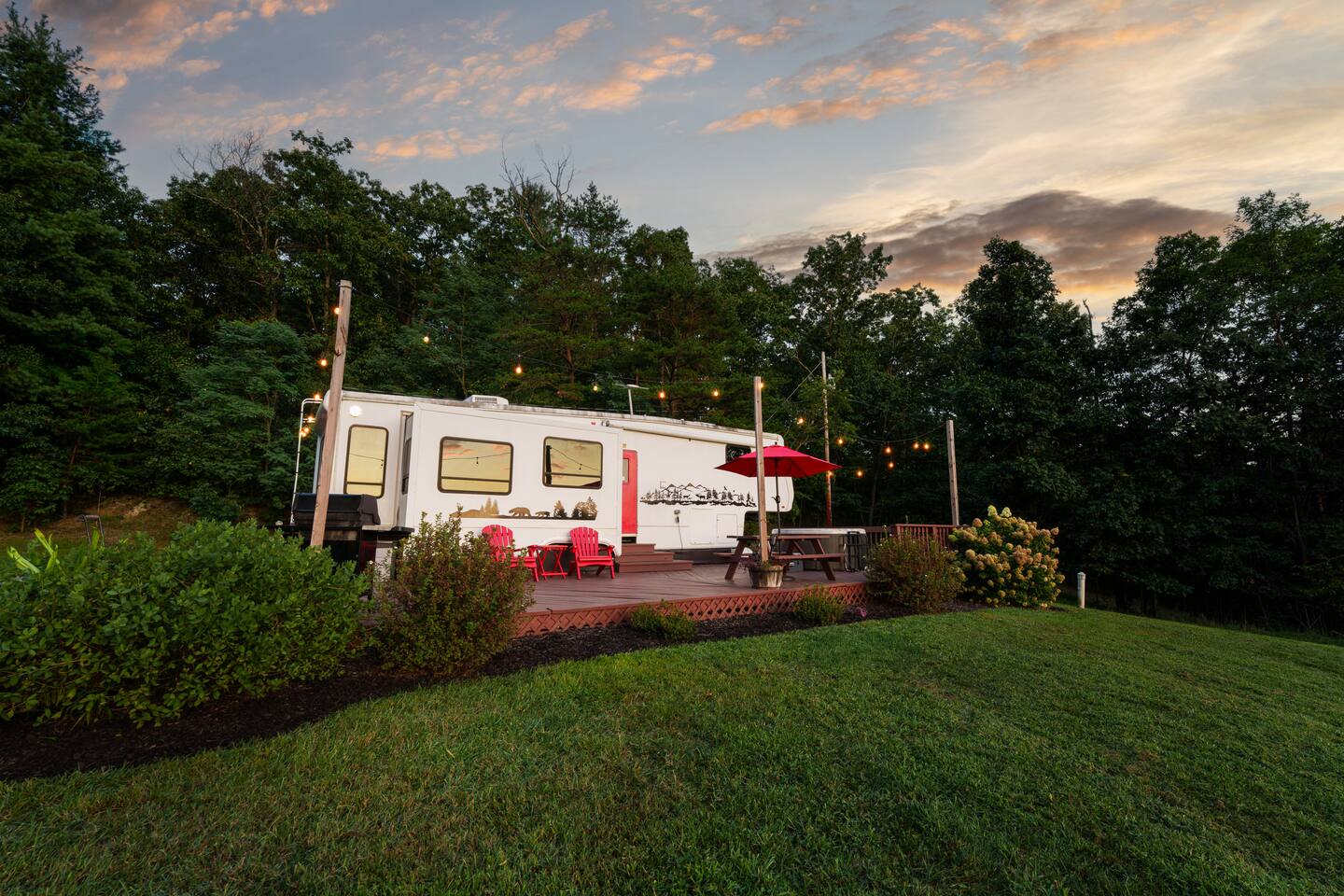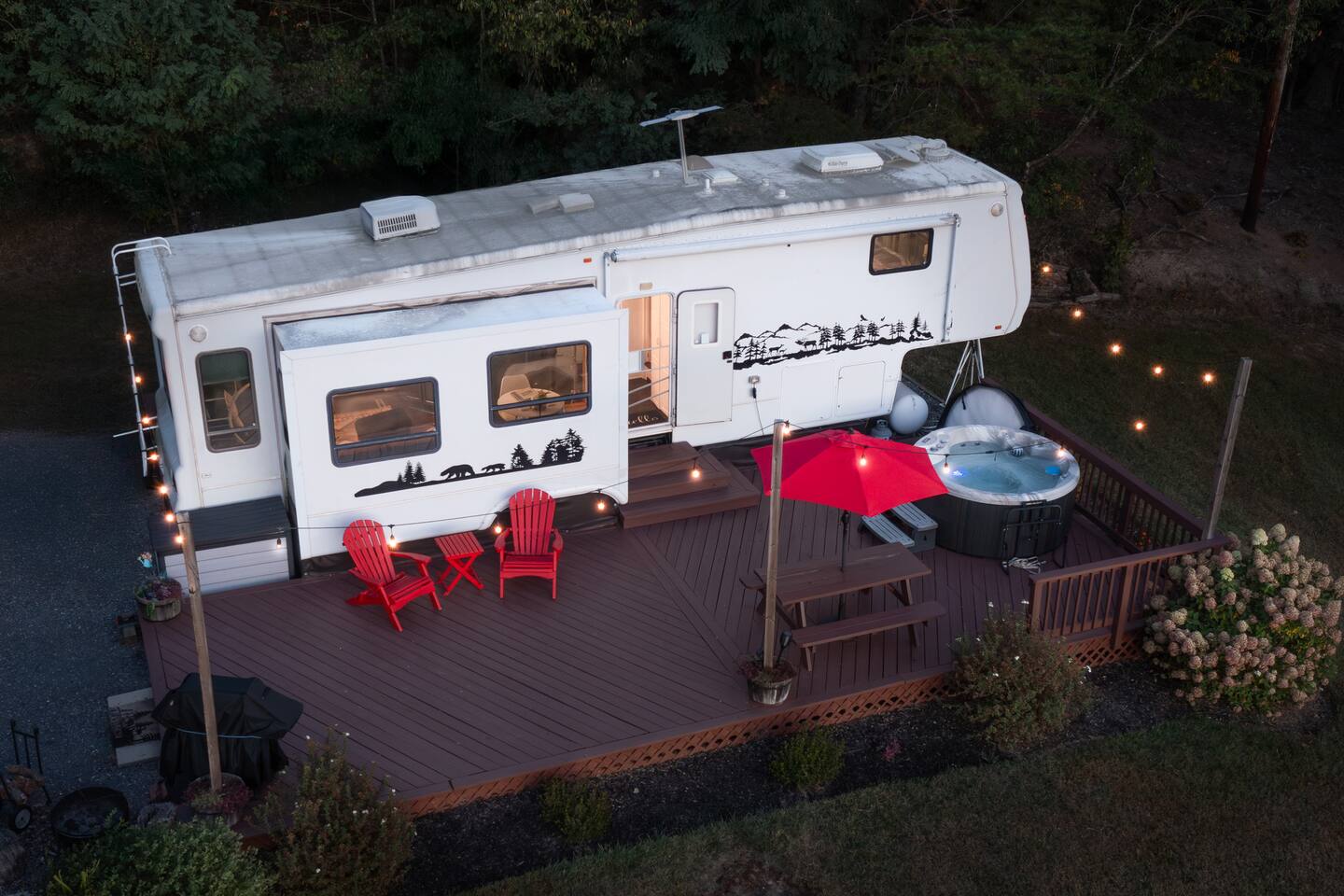 ✨ Welcome to The Ginger — a modern-boho glamper perched high in the scenic hills of West Virginia 🌄 Designed with intention, comfort, and a whole lot of heart, this cozy retreat is your go-to spot for stargazing, sunset soaking, and unforgettable mountain memories. 🛏️ Inside, you'll find a dreamy king-size bed, comfy bunks, and a futon that even the kids gave ⭐⭐⭐⭐⭐. Freshly laundered linens and towels await you — and yes, there's a washer and dryer for longer stays or post-adventure cleanups. ☕ I love to travel, and I’ve stocked The Ginger with everything I wish every Airbnb had: coffee (no early grocery runs!), filters, powdered creamer, sugar, spices, salt & pepper, napkins, paper towels, and plenty of toilet paper — because no one wants to run out in the woods! 🍳 The fully stocked kitchen has everything you need for stovetop cooking, or take it outside to the Weber grill, fully fueled with an extra propane tank on standby. We've thought of everything so you can just relax. 🛁 Outside, unwind in the brand-new hot tub under the stars, cozy up by the fire pit, or sleep under the sky on the camping cots provided — the massive deck is perfect for stargazing. Pro tip: don’t miss sunset here... it's absolutely breathtaking 🌅 🪵 Firewood is usually ready and waiting, but feel free to pick up extra nearby just in case. 💫 Whether you're here to unplug, explore, or simply recharge with the ones you love, The Ginger is set up so all you need to do is show up, settle in, and make some memories.