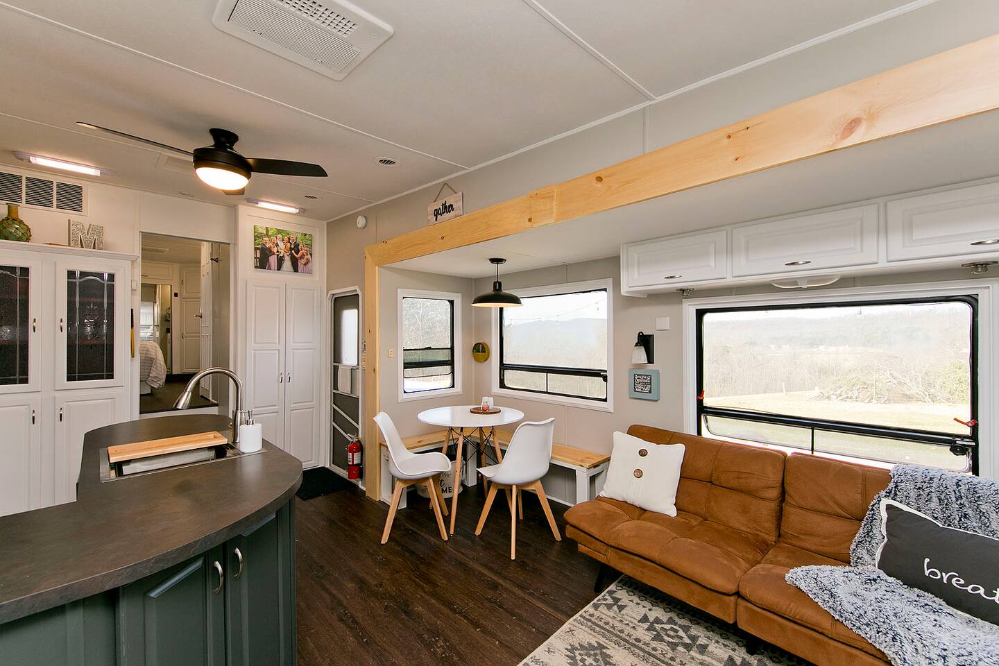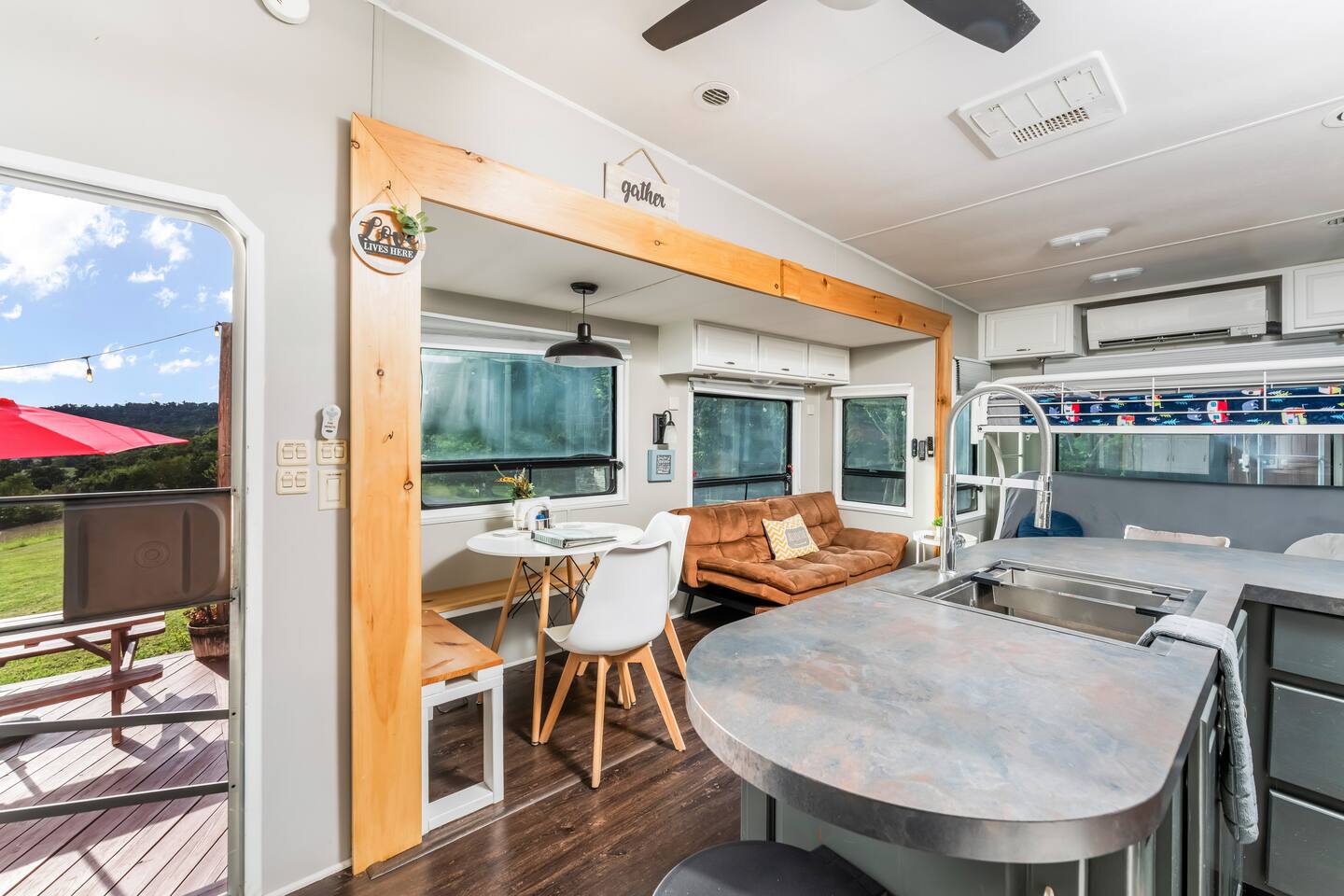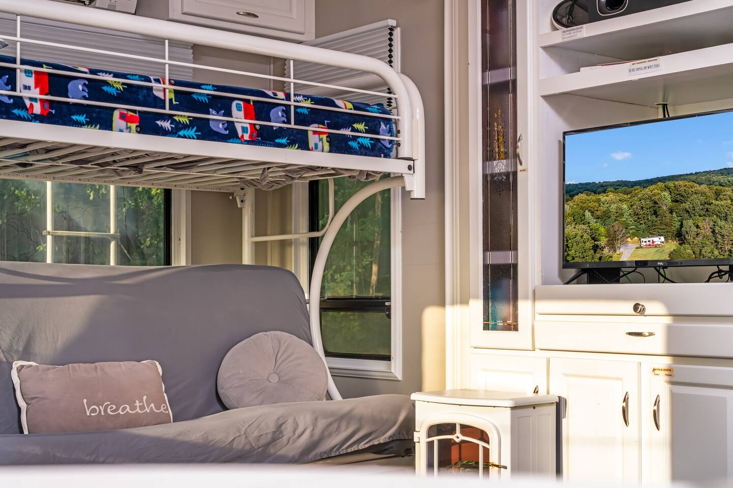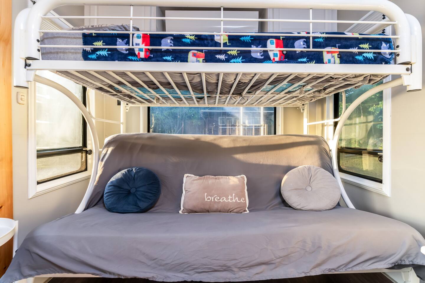 ✨ Welcome to The Ginger — a modern-boho glamper perched high in the scenic hills of West Virginia 🌄 Designed with intention, comfort, and a whole lot of heart, this cozy retreat is your go-to spot for stargazing, sunset soaking, and unforgettable mountain memories. 🛏️ Inside, you'll find a dreamy king-size bed, comfy bunks, and a futon that even the kids gave ⭐⭐⭐⭐⭐. Freshly laundered linens and towels await you — and yes, there's a washer and dryer for longer stays or post-adventure cleanups. ☕ I love to travel, and I’ve stocked The Ginger with everything I wish every Airbnb had: coffee (no early grocery runs!), filters, powdered creamer, sugar, spices, salt & pepper, napkins, paper towels, and plenty of toilet paper — because no one wants to run out in the woods! 🍳 The fully stocked kitchen has everything you need for stovetop cooking, or take it outside to the Weber grill, fully fueled with an extra propane tank on standby. We've thought of everything so you can just relax. 🛁 Outside, unwind in the brand-new hot tub under the stars, cozy up by the fire pit, or sleep under the sky on the camping cots provided — the massive deck is perfect for stargazing. Pro tip: don’t miss sunset here... it's absolutely breathtaking 🌅 🪵 Firewood is usually ready and waiting, but feel free to pick up extra nearby just in case. 💫 Whether you're here to unplug, explore, or simply recharge with the ones you love, The Ginger is set up so all you need to do is show up, settle in, and make some memories.