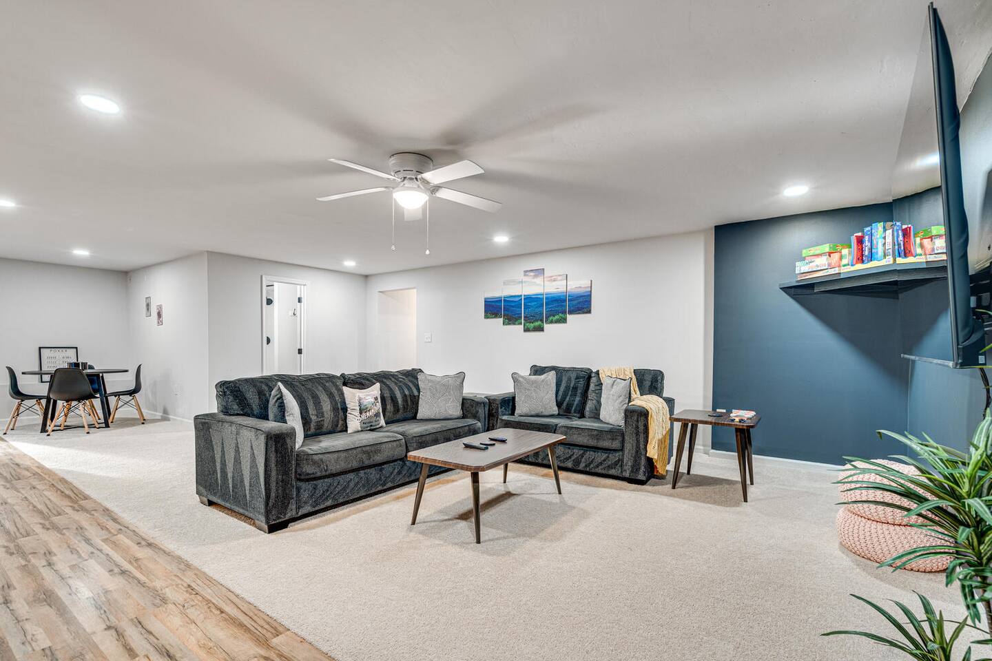 Perfect Getaway Home with Game Room, Hot Tub, and Family-Friendly Amenities Welcome to your ideal home base for adventures, a serene escape from the city, or a quiet retreat for writing and work. Our versatile home is also perfect for traveling professionals and insurance relocation specialists—ask about our special monthly rates! Spacious and Well-Equipped for All Your Needs Bedrooms and Bathrooms: Spread out in 3 spacious bedrooms and 3 full bathrooms, ensuring comfort and privacy for everyone. Bright Living Space: The living room's large bay window floods the space with natural light, creating a warm and inviting atmosphere. Dining and Outdoor Oasis: The dining room, seating six, opens directly to a deck with a gas grill, propane fire pit, outdoor dining area, and cornhole set—perfect for outdoor entertaining. Fully Equipped Kitchen: The kitchen comes fully equipped for all your cooking and baking needs. Ultimate Entertainment in the Game Room Downstairs Game Room: Enjoy endless fun in our unique game room featuring: Large wooden bar Over 25 classic arcade games Foosball table Air hockey Skee ball Four-person card table with poker set and board games 75" smart ROKU HDTV Additional three-quarter bathroom Patio and Hot Tub: Step outside to a patio with a NEW 7-person hot tub, perfect for relaxation after a day of adventures. Family-Friendly Features: We love hosting families and have equipped our home to be a vacation destination for both kids and parents. Family-friendly amenities include: High chair, pack n play, and safety features like outlet covers Books for all ages, games, and video arcade games 32" ROKU TV in the bunk room for kids' entertainment Explore the Shenandoah Valley Discover the natural beauty and attractions of the Shenandoah Valley: Appalachian Trail Shenandoah Valley Wine Trail & Shenandoah Beerwerks Trail Skyline Drive for biking or driving Skyline Caverns and Luray Caverns Shenandoah River with local outfitters for gear or bring your own Thousands of acres of National Forest for hiking, mountain biking, and rock climbing Wildlife viewing with deer frequently visiting our property Impeccably Clean and Ready for You We strive to provide an impeccably clean space and go above and beyond to anticipate and meet your needs, ensuring you can relax and enjoy your vacation to the fullest. If there’s anything else we can do to earn your five-star review, please let us know! Book now and make our home the perfect setting for your unforgettable getaway!