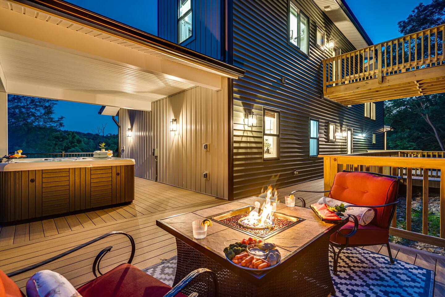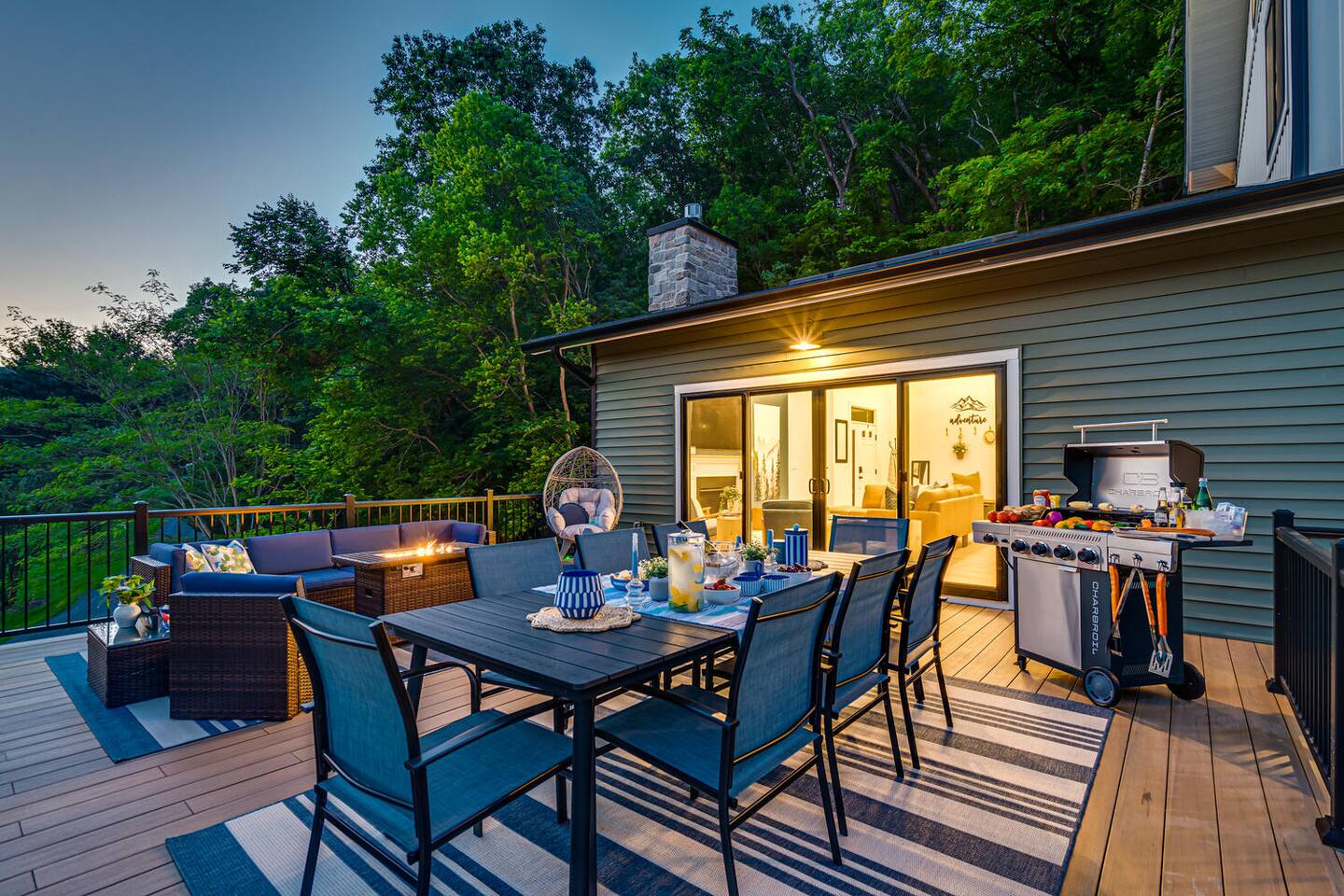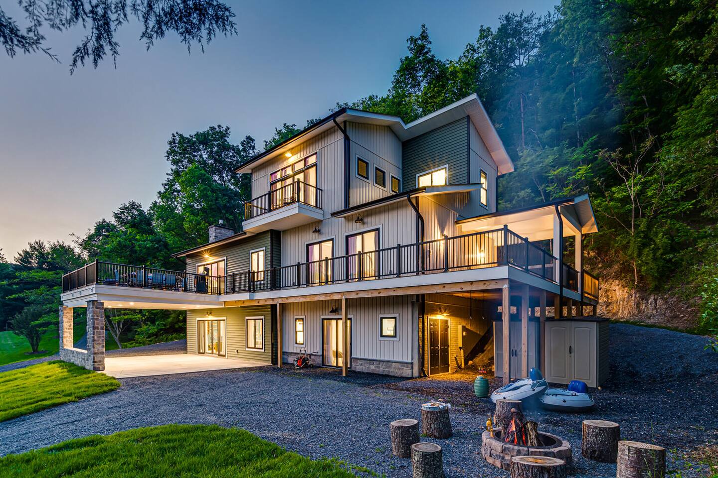 Riverfront luxury in Shenandoah Valley! This stylish 4-bed retreat sits right on the water, offering panoramic views, private river access for kayaking & fishing, and a bubbling hot tub under the stars. Inside, tasteful décor, a fully stocked kitchen, smart TVs, and fast Wi-Fi make relaxing effortless. Four comfy bedrooms sleep your crew, while outside you’ll find a spacious deck, fire pit, and grill. Minutes to hiking, caverns, wineries, and charming mountain towns—your perfect escape awaits!