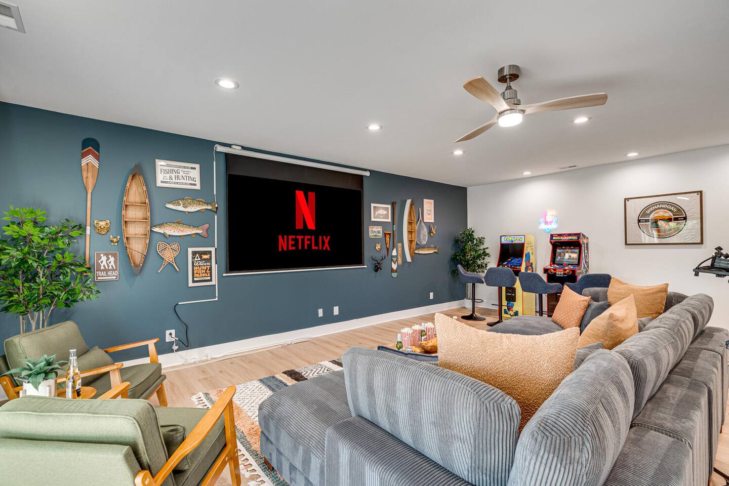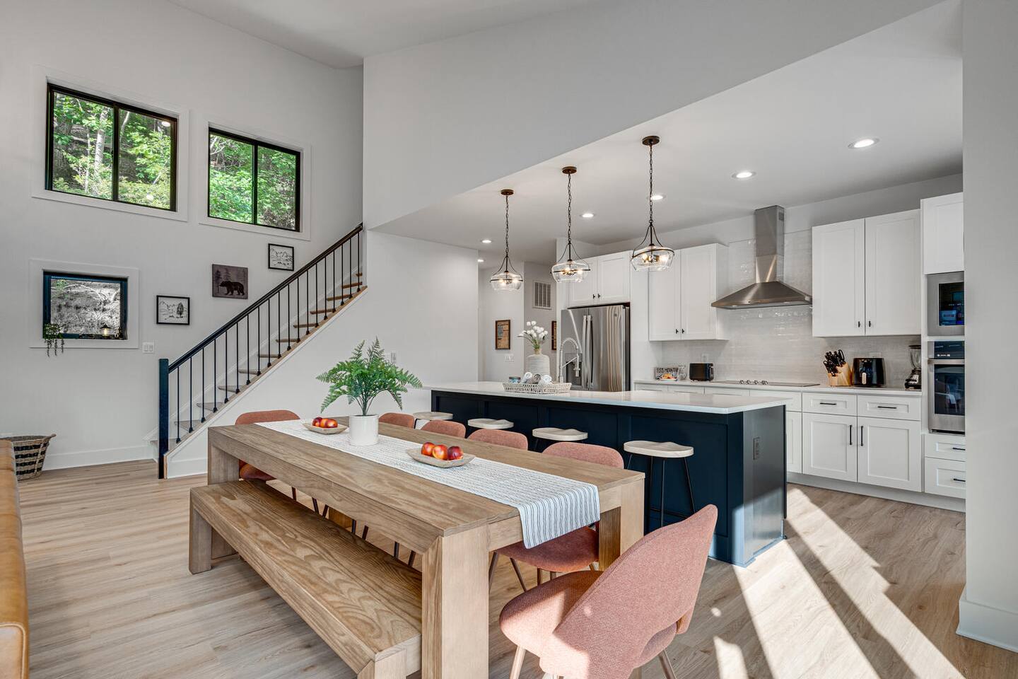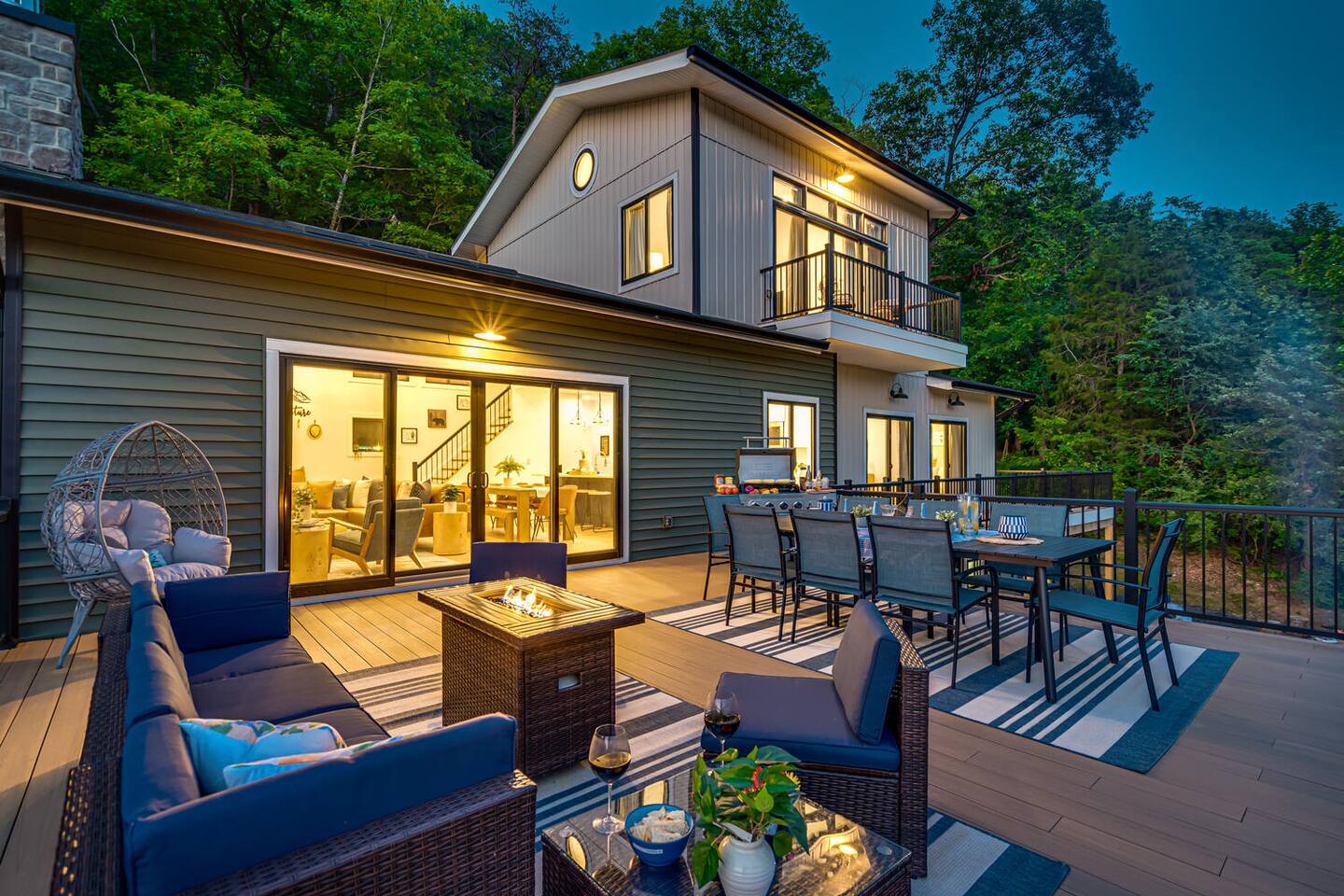 Riverfront luxury in Shenandoah Valley! This stylish 4-bed retreat sits right on the water, offering panoramic views, private river access for kayaking & fishing, and a bubbling hot tub under the stars. Inside, tasteful décor, a fully stocked kitchen, smart TVs, and fast Wi-Fi make relaxing effortless. Four comfy bedrooms sleep your crew, while outside you’ll find a spacious deck, fire pit, and grill. Minutes to hiking, caverns, wineries, and charming mountain towns—your perfect escape awaits!